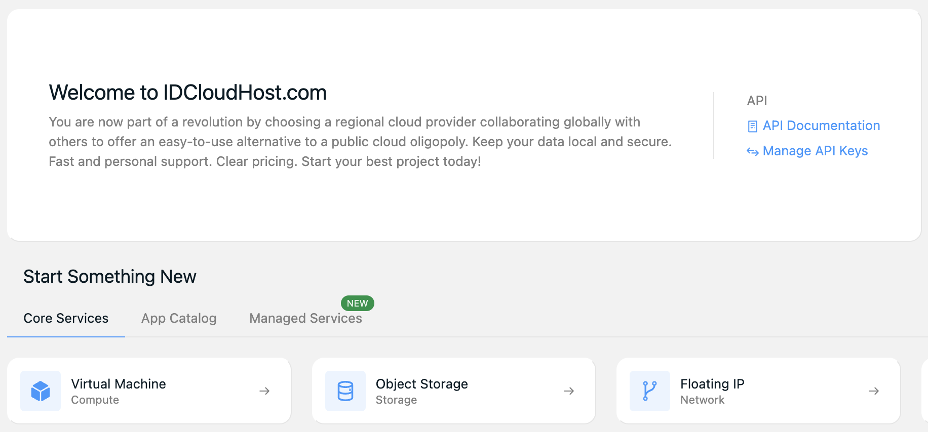Setelah memiliki akun IDCloudHost, Anda perlu membuat “bucket” di Object Storage IDCloudHost